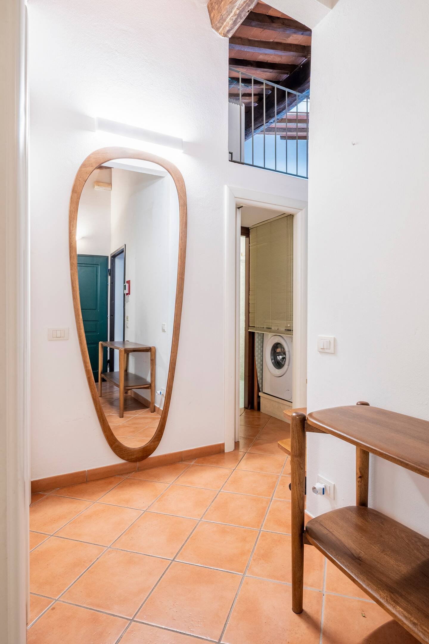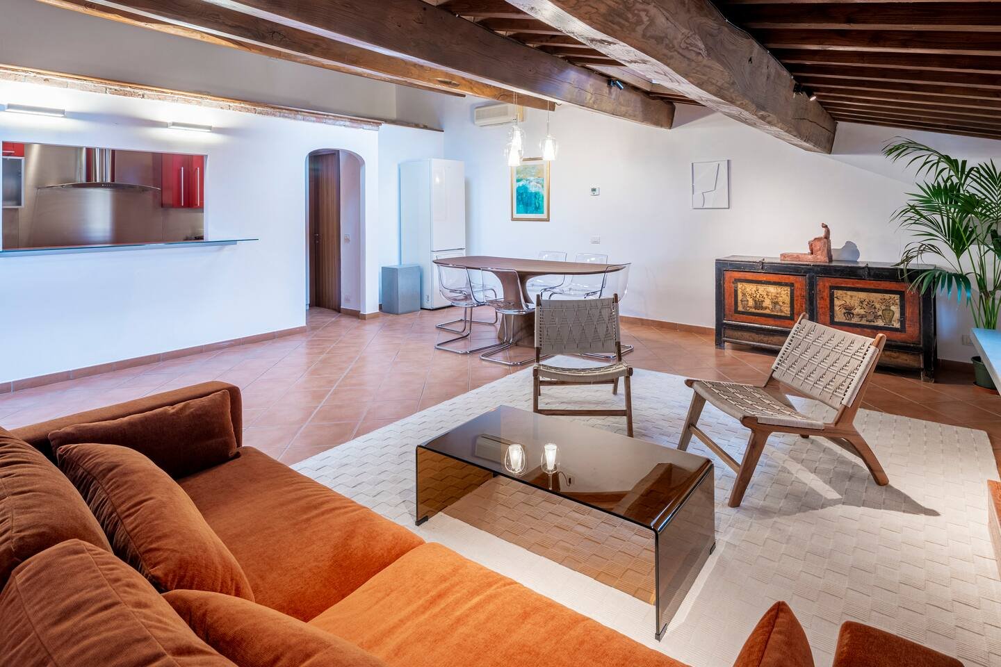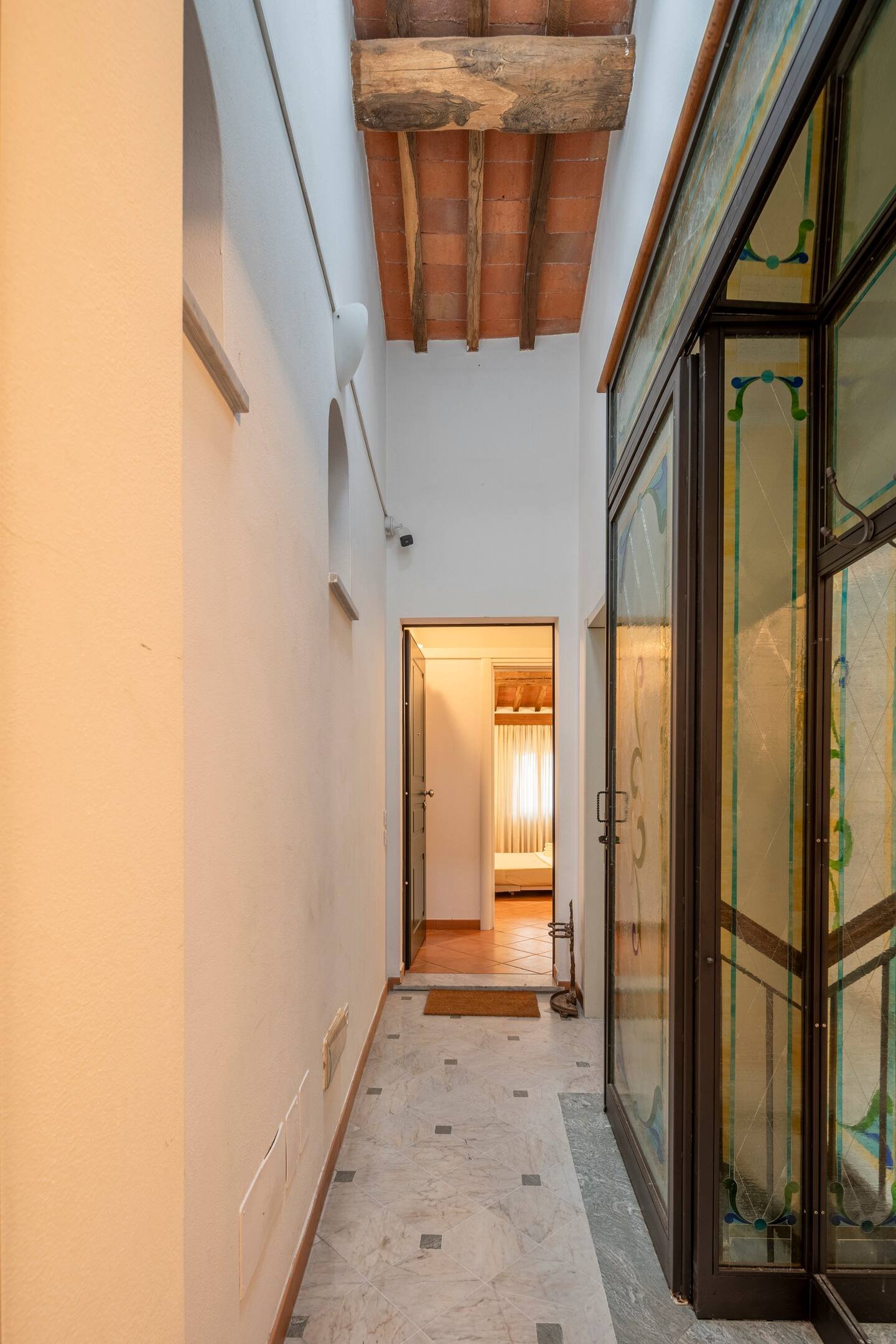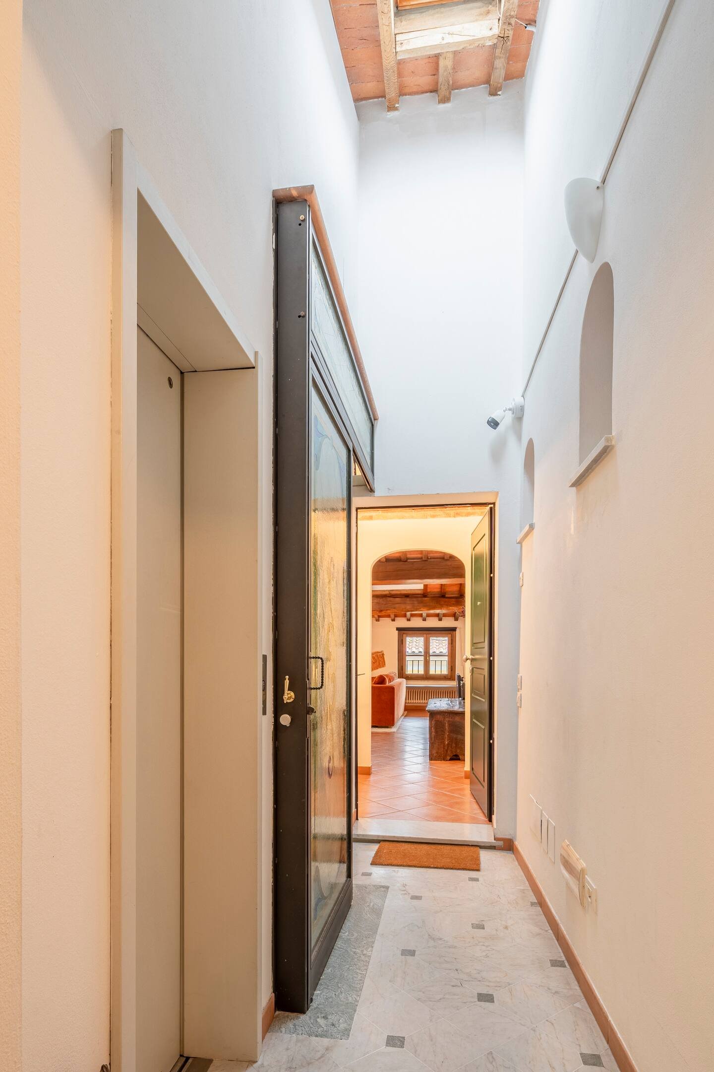 L’appartamento, appena riarredato, si trova al terzo e ultimo piano di un edificio storico e si sviluppa su due lati collegati da un pianerottolo in marmo privato.
