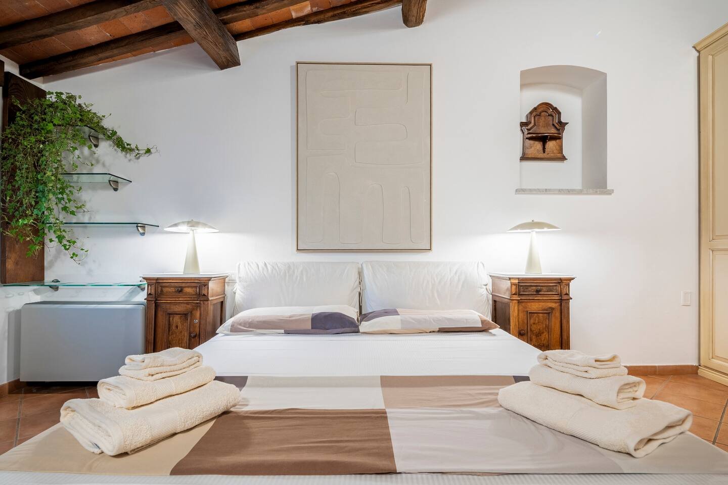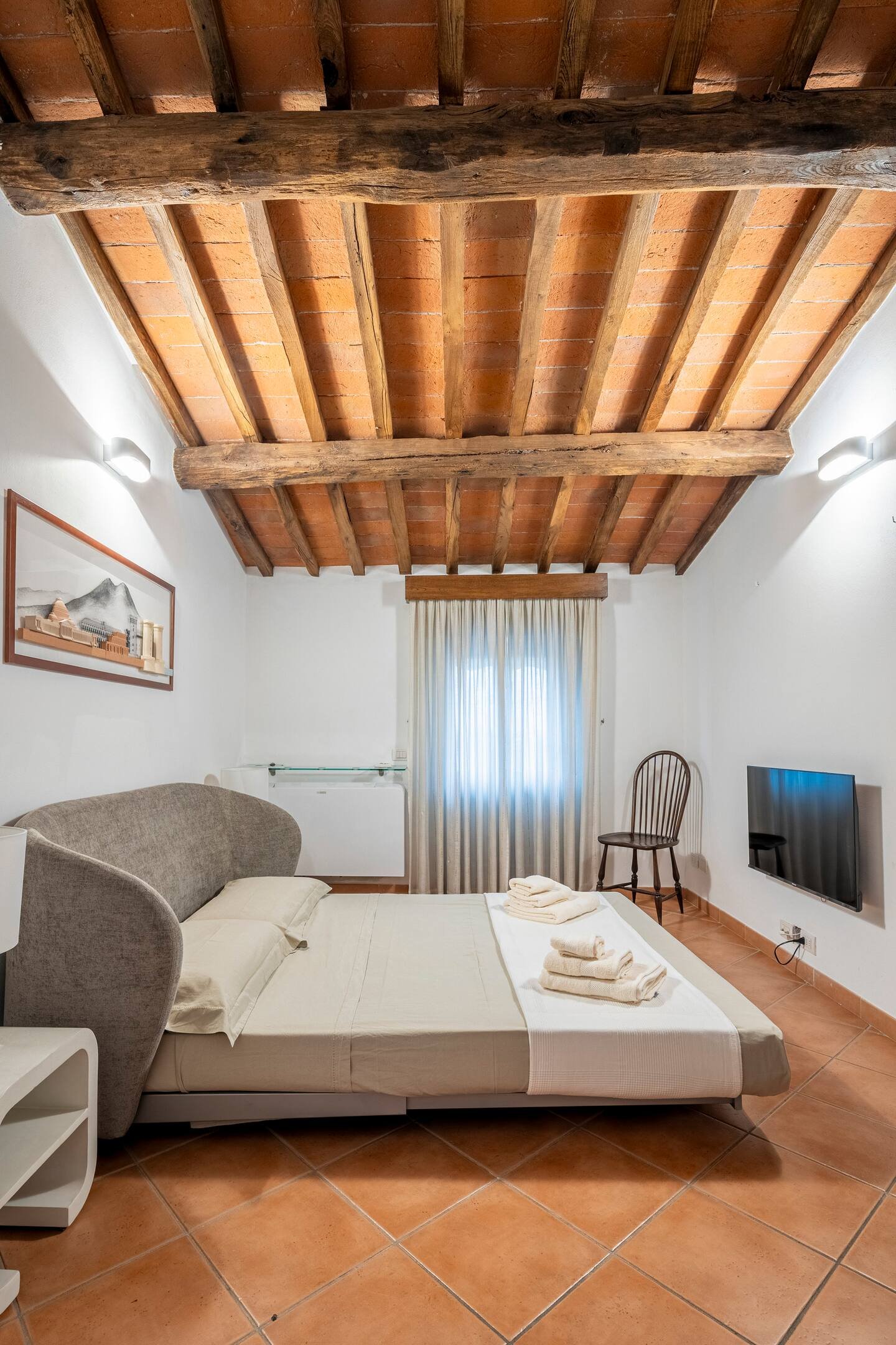 Seconda Camera matrimoniale con armadio, Smart TV, topper e biancheria 100% cotone di alta qualità.